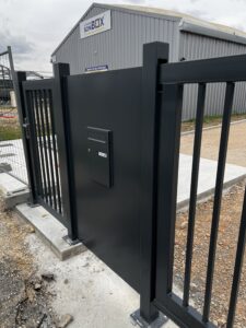 Portillon et boîte aux lettres intégrés à l’ensemble, long de plus de 9 mètres.